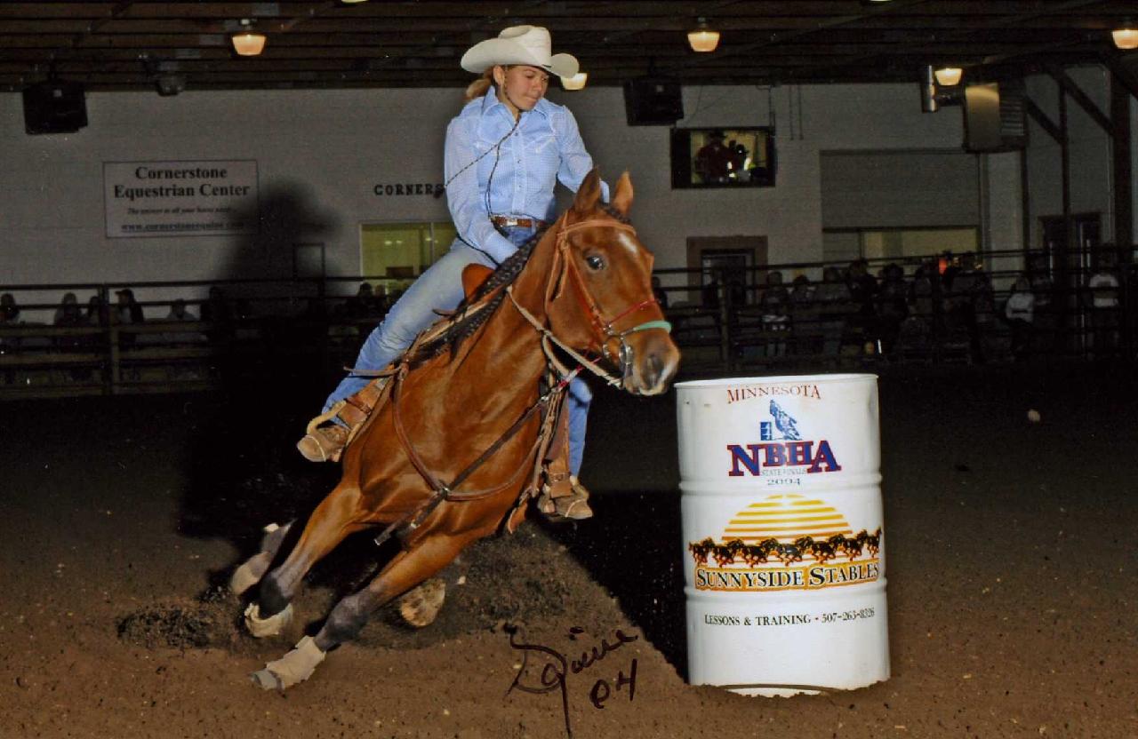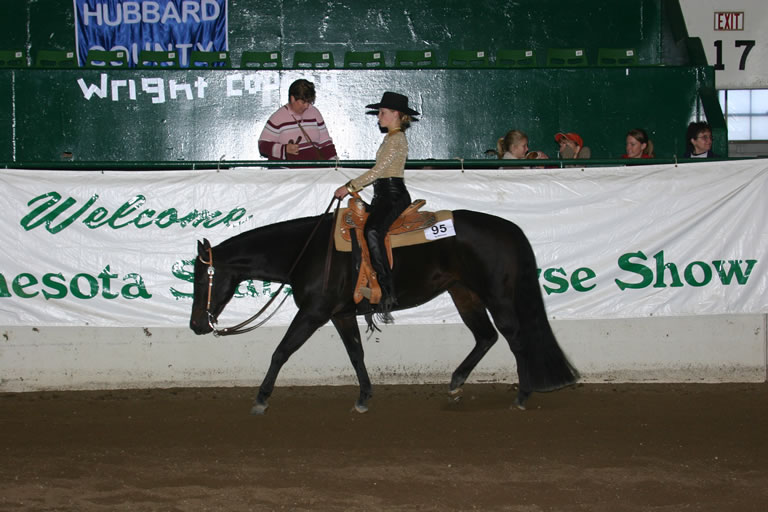 Jessica went on the next month to the MN State 4-H horse show and won Showmanship, Western Pleasure, Western Horsemanship, she placed 2nd in English Pleasure and 4th in Trail. The following weekend she went to the Champ Show and, with over 60 horses in the 13 and under Western Pleasure, she placed 2nd. This year April (Vermillion Flower) received her ROM in Youth Performance.